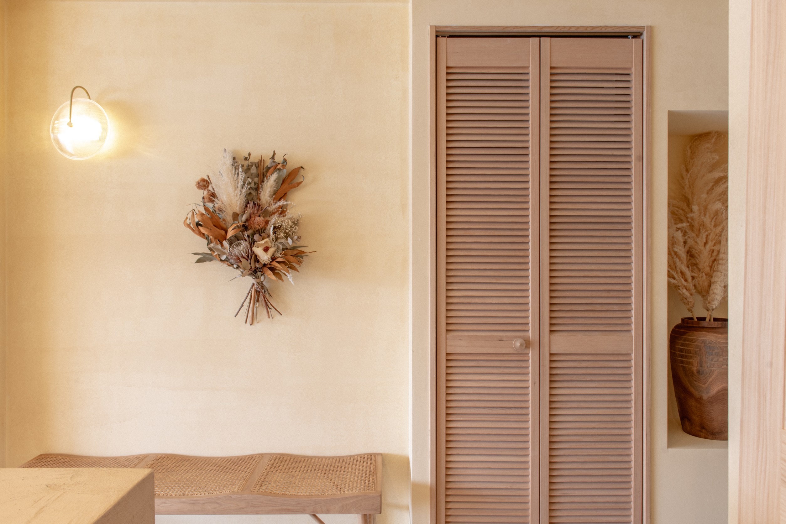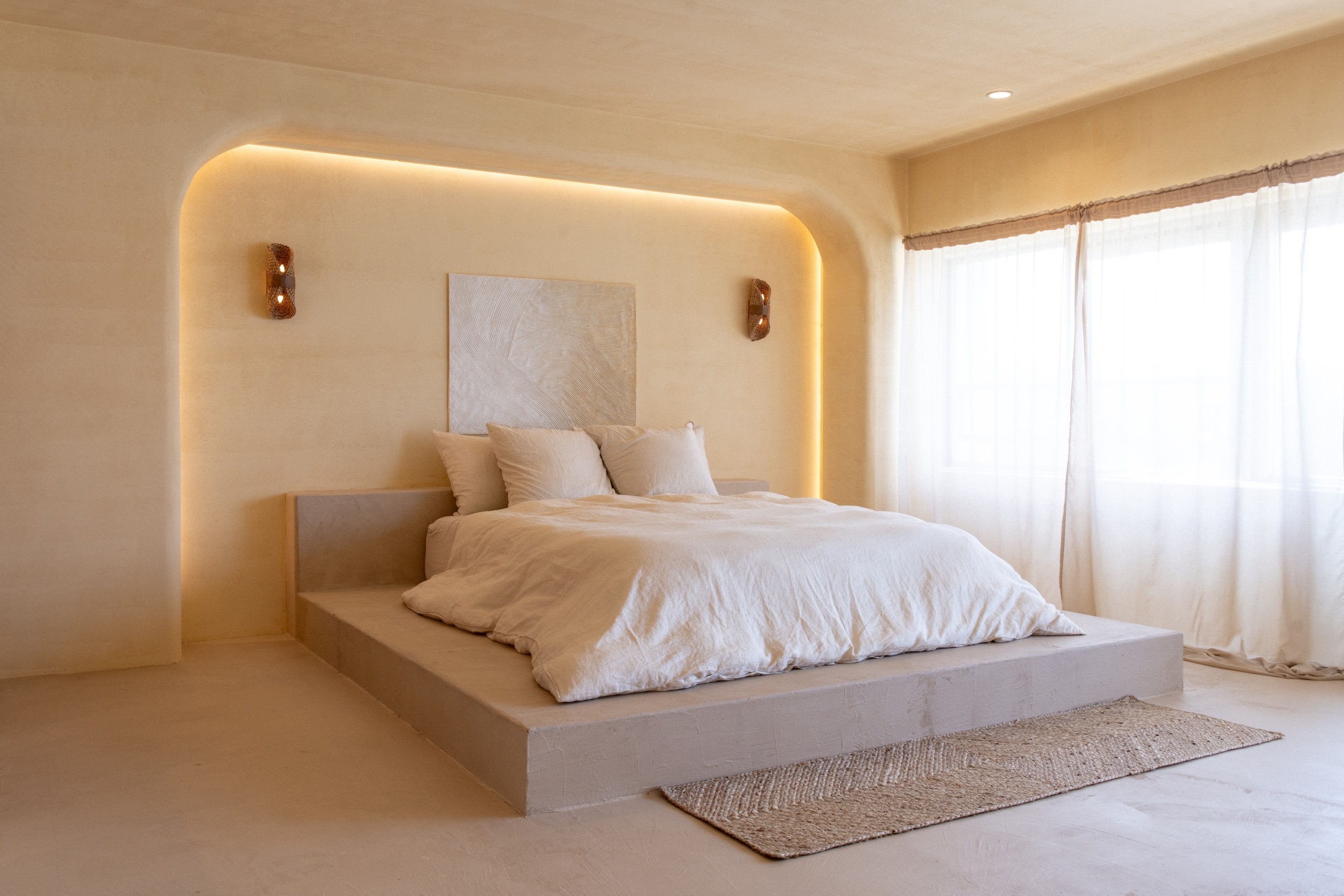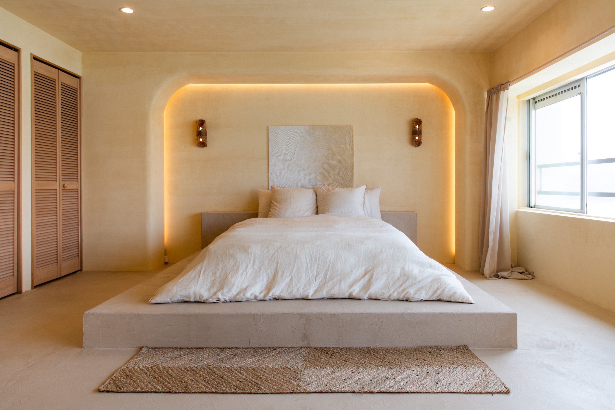 自然光をたっぷり取り入れ、ベージュで統一された壁、床、天井。