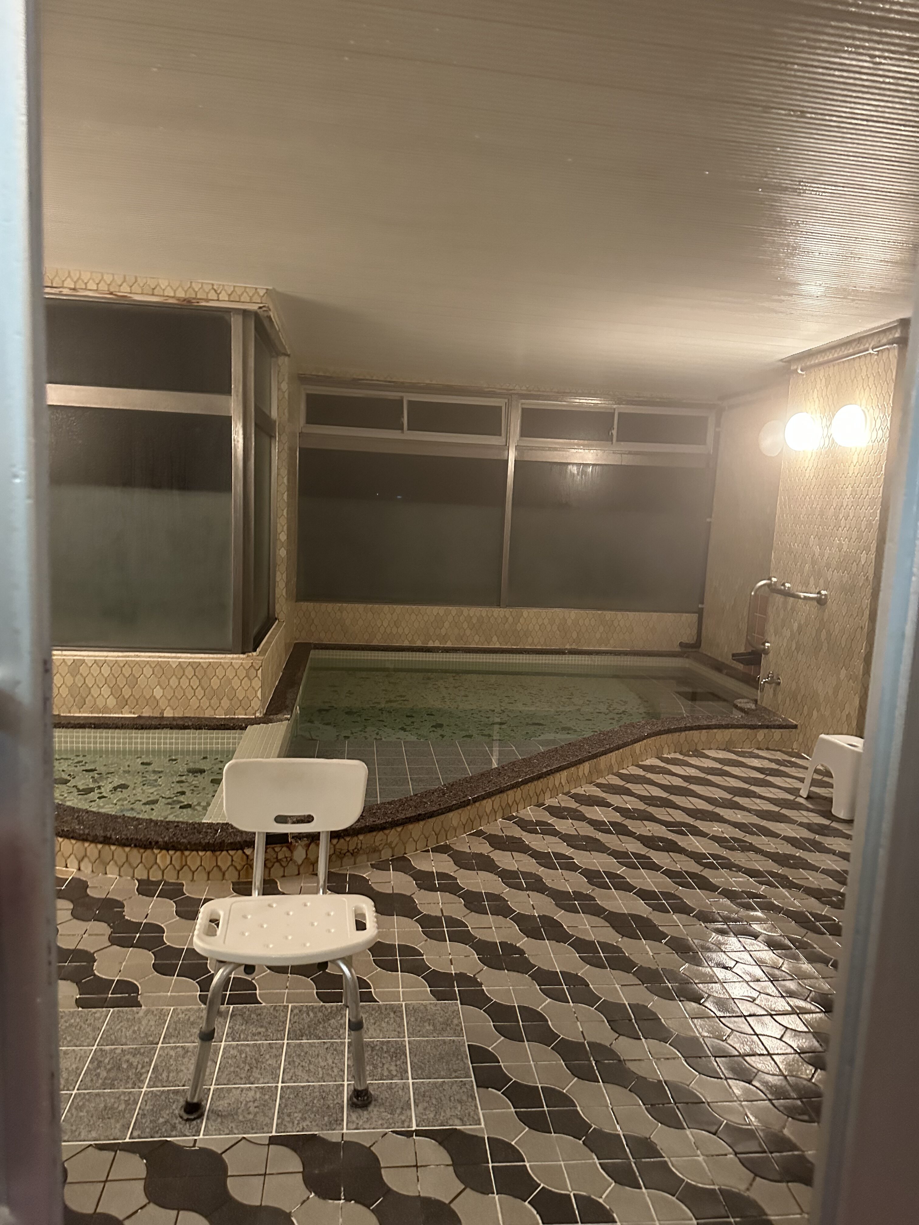 1階共用部分には地元の源泉温泉の大浴場と家族風呂があり
